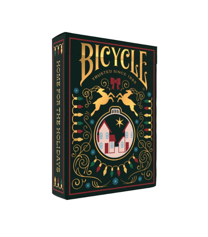 Lleva el encanto de las fiestas a tu mesa de juego con las cartas Bicycle Home for the Holidays, una baraja que combina tradición, arte y el auténtico espíritu navideño. Esta edición limitada captura la calidez y la nostalgia de la temporada con un diseño espectacular en tonos verdes de pino, intensos acentos carmesí y elegantes detalles dorados. Cada carta presenta acogedoras casas decoradas para las fiestas, evocando la sensación de reunirse con quienes más quieres.