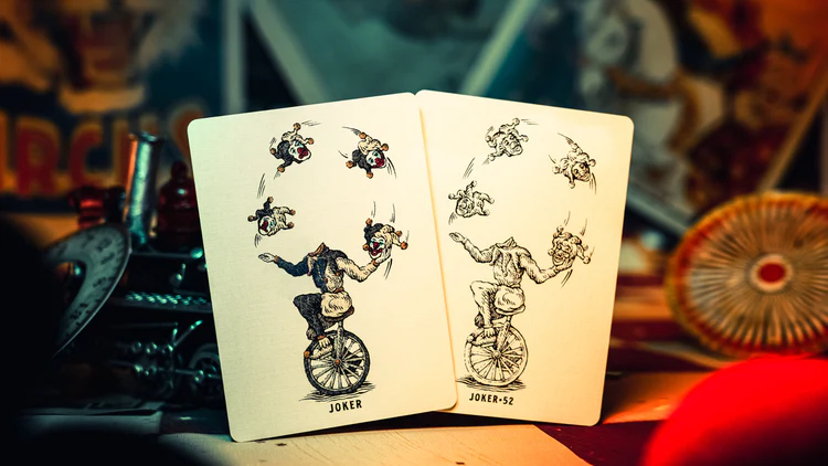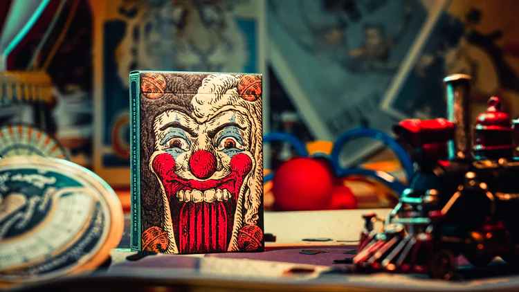 Las ilustraciones presentan un universo inspirado en payasos y estética de circo, con personajes que pueden ser tanto juguetones como inquietantes. Esta temática se extiende a todas las cartas del mazo, creando una narrativa visual coherente centrada en el joker como protagonista.